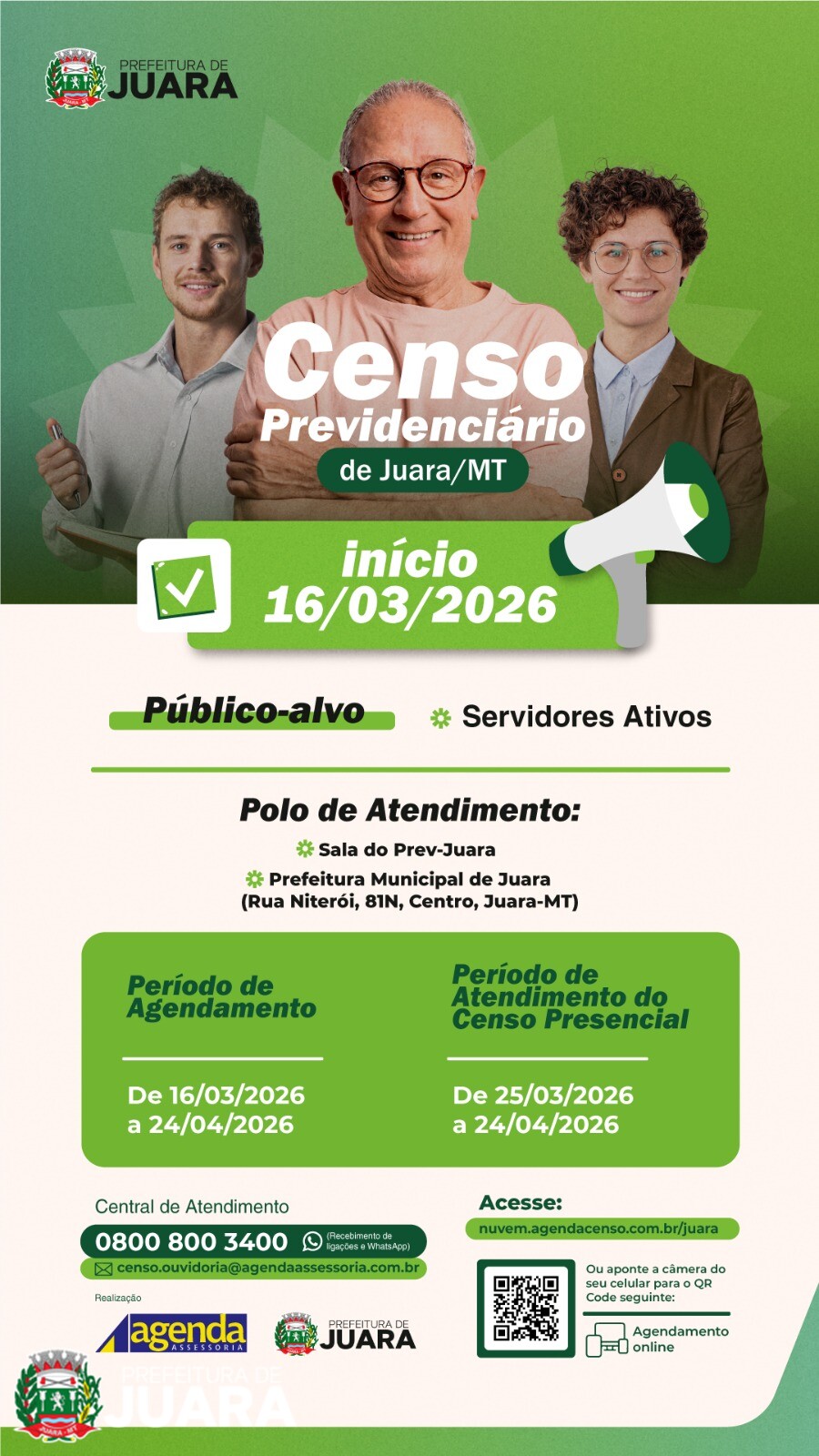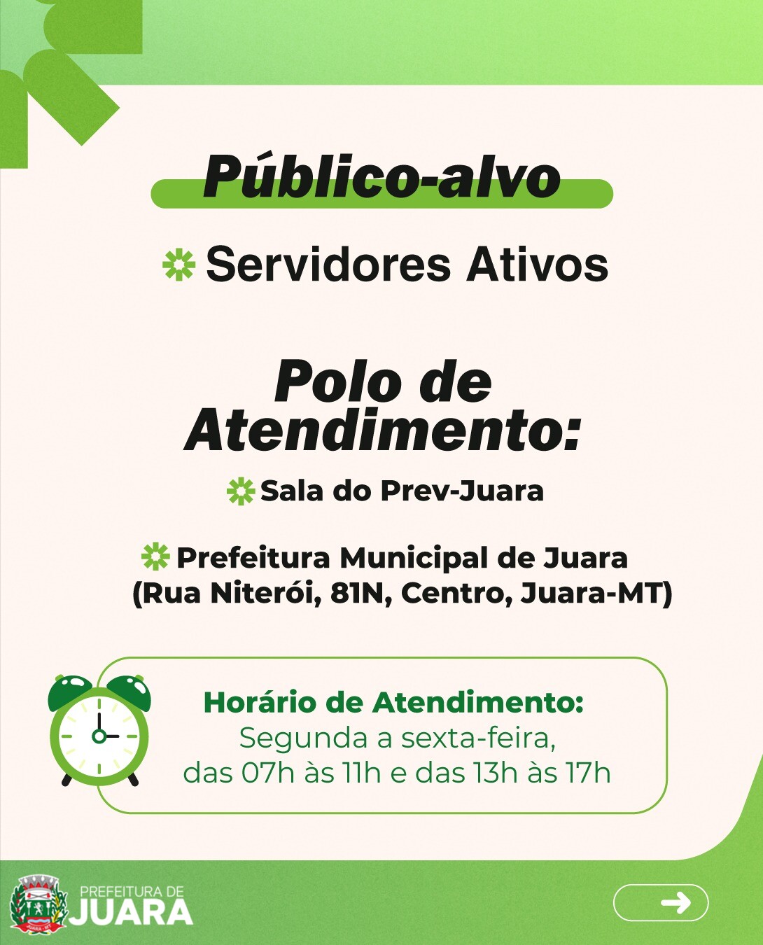 sala do PREV-JUARA, localizada na Rua Niterói, 81-N, Centro. O horário de